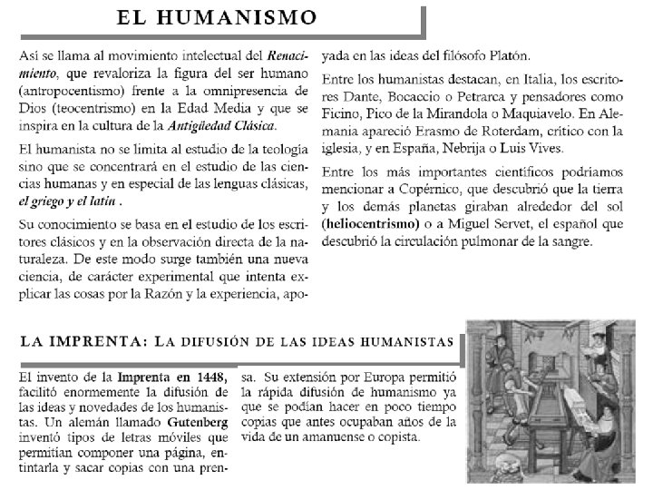 1. L’HUMANISME n n Què és? Quina relació té amb el Renaixement? Quines són les seues característiques? Com es va difondre?