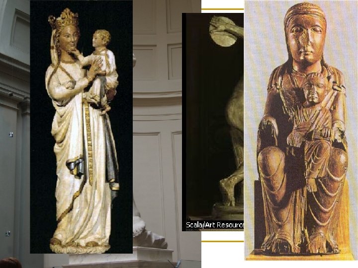 n Donatello L’escultura s’inspira Grècia i Roma i es defineixen pel realisme, idealisme, harmonia, equilibri, proporció. Es dóna molta importància a l’equilibri, a la perfecció, simetria, al moviment i a l’expressió dels rostres. Els escultors del Renaixement utilitzen el marbre i el bronze. L´ésser humà, els nus, els temes mitològics, i en menor mesura el religiós són els temes principals en les escultures, ja que els artistes creuen que mostra la perfecció de l’ésser humà. Representen una bellesa idealitzada ja que es considera que l’ésser humà és el centre de la natura i n’és l’obra més perfecta. En el quattrocento destaquen Ghiberti i Donatello mentre que l’escultor més important del Cinquecento és Miquel Àngel. Les seves escultures es caracteritzen per l’expressivitat i la majestuositat DONATELLO, David en bronze (Detall)