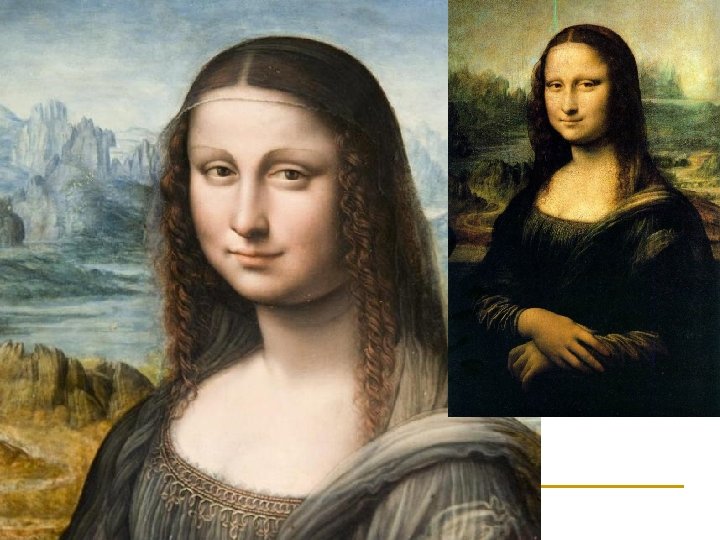 Idea de luz y sombra a través de pasos continuos Elemento de esta obra que causa admiración: sonrisa Crea el esfumado (idea de esfumarse, transparencia) De fondo aparece un paisaje Gioconda, de Leonardo Da Vinci