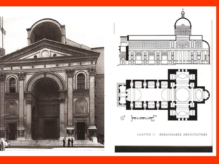 EL RENACIMIENTO EN ITALIA • ARQUITECTURA – Nuevas tipologías de edificios al estilo clásico. – Plantas basilicales y estructuras centralizadas. – Arco de medio punto, capiteles y ordenes griegos y romanos (dórico, jónico y corintio). – Bóveda de cañón, cúpulas clásicas. – Iglesias, catedrales, palacios y villas. – QUATTROCENTO – CINQUECENTO
