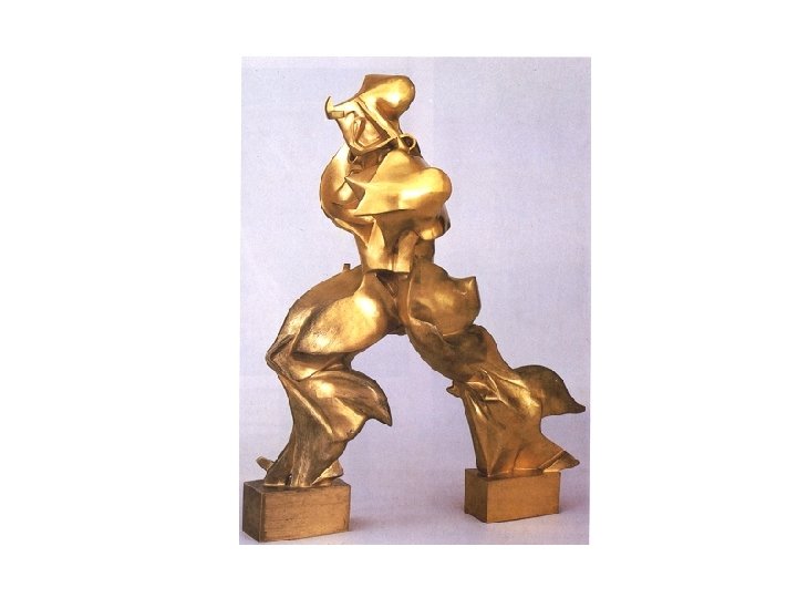 Sculpture: Modern • Italian Futurism (c. 1915) – Boccioni • aim: – to portray speed & dynamism of contemporary life – to make objects live by showing their extensions in space • process: “systematization of the interpenetration of planes” » force-lines » arabesque curves