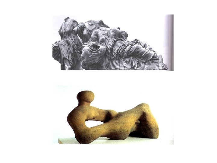 Sculpture: Modern • Surrealism (c. 1925 -45) – Henry Moore (1898 -1986) • • forms: massive, biomorphic poses: traditional reclining nude “negative” space --> hollowed out spaces/openings compare/contrast: Classical Greek sculpture