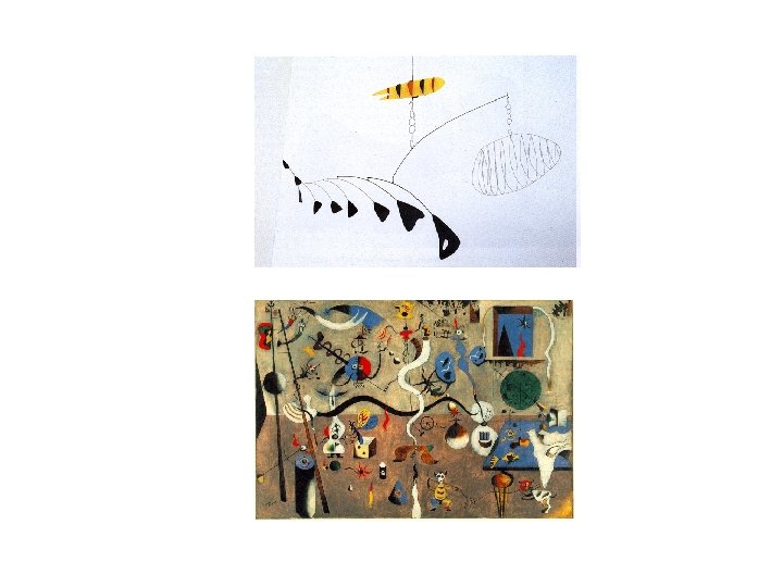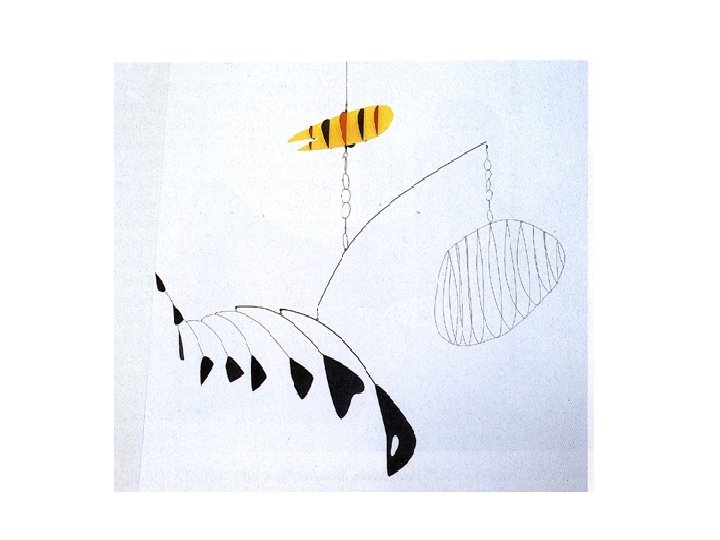 Sculpture: Modern • Surrealism (cont. ) – Calder (1898 -1976) • “mobiles” – delicately balanced constructions of metal wire – hinged together & weighted to move through air • influence of Miró & Surrealism – borrowed biomorphic shapes – similar color scheme (black/white + primaries)
