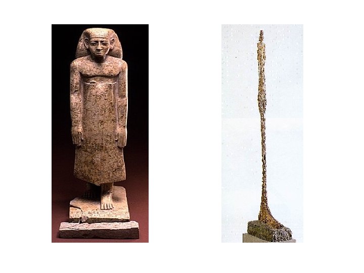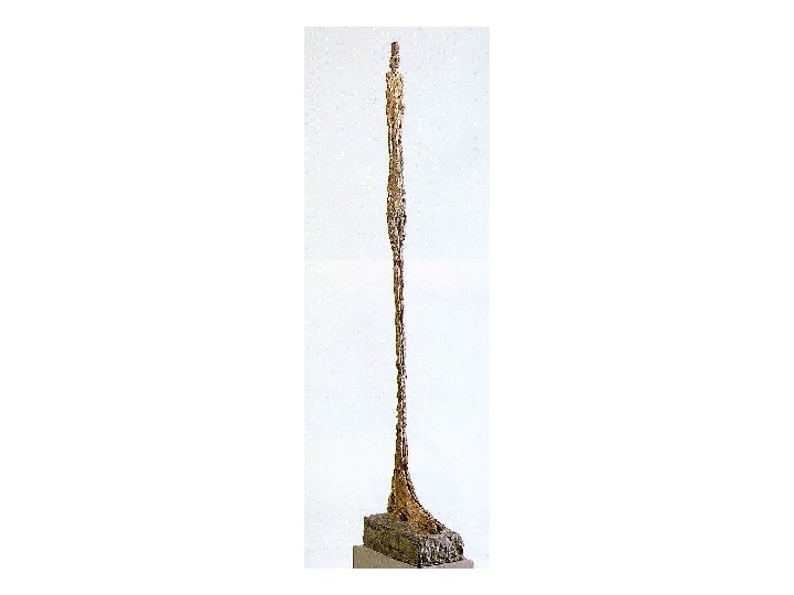 Sculpture: Modern • Post-World War II (c. 1950) – Giacometti (1901 -66) • theme: Existential anxiety – idea of extinction – paradoxical power of emaciated human form • figures: – anti-Classical proportions – yet recall rigid, standing figures of ancient Egypt