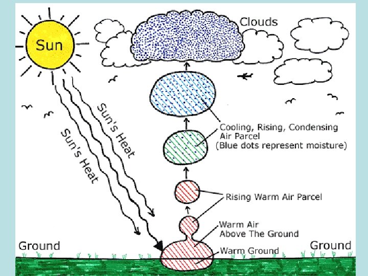Saturation • If the air is SATURATED, it is holding ALL of the water that it can hold. – WARM air expands and can hold more water vapor than COLD air, so it takes more water to saturate warm air.