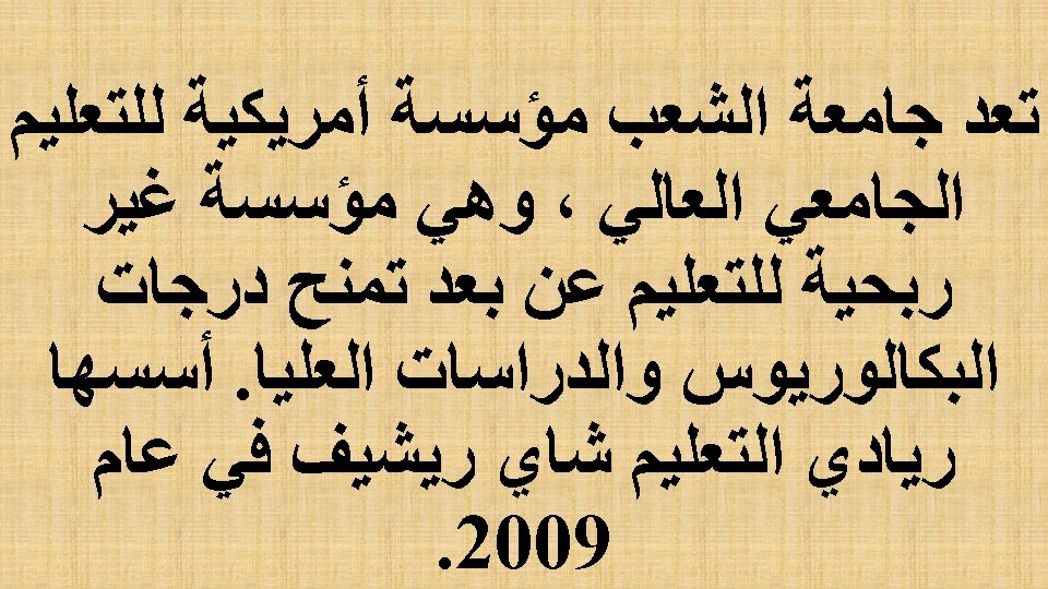 University of the People (Uo. People) is an American non-profit distance learning institution of higher education that offers undergraduate and graduate degrees. It was founded by entrepreneur Shai Reshef in 2009.