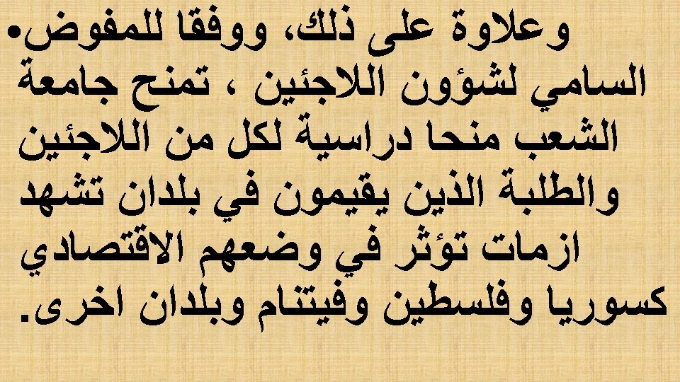 Furthermore, according to the United Nations High Commissioner for Refugees the University of the People offers scholarships for refugees and students residing in countries experiencing crisis affecting their economic situation like Syria, Palestine, Vietnam and other countries.