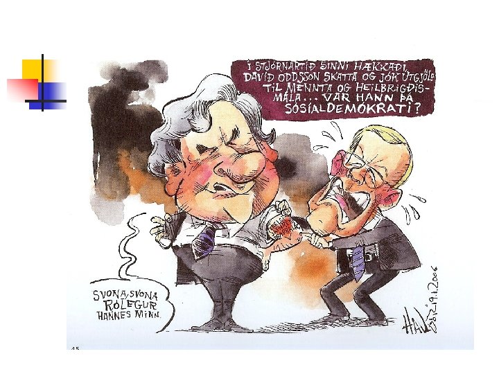 Ný þjóðarsátt n n n Lækkun tekjuskatts fyrirtækja og einstaklinga tekjuháum til góðs Öllum til góðs, að tekjuháum fjölgi Tekjuháir kjósa til hægri Hækkun bóta tekjulágum til góðs Tekjulágir kjósa til vinstri Báðir hópar fá sitt