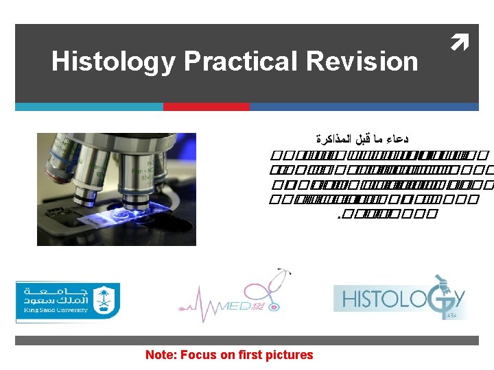 Done By: 3 of Al 3 ofy Edited By: ﺩﻋﺎﺀ ﻣﺎ ﺑﻌﺪ ﺍﻟﻤﺬﺍﻛﺮﺓ ����� ����� � ������ ���� ������� �����. Amal Afrah Thank you for checking our work For any correction, suggestion or any useful information do not hesitate to contact us: Histology 434@gmail. com