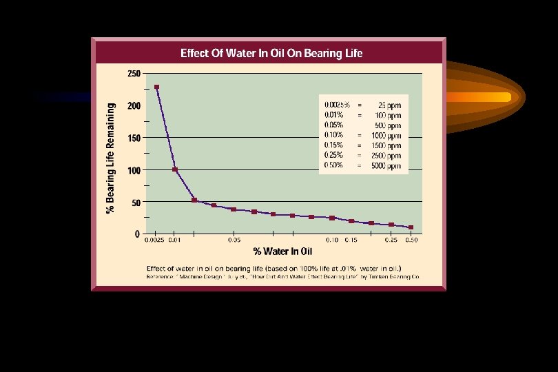 Water Contamination Damage • Corrosion of Metal Surfaces • Accelerated Abrasive Wear • Bearing Fatigue • Fluid Additive Breakdown • Viscosity Variance • Increase in Electrical Conductivity