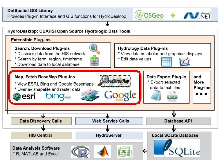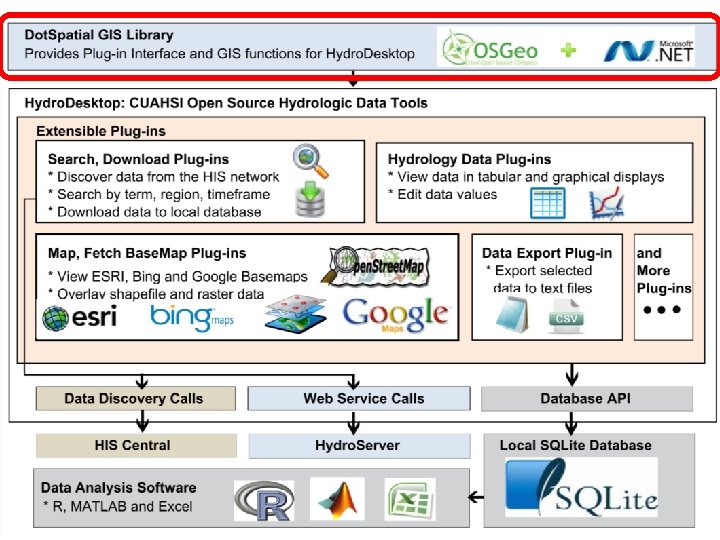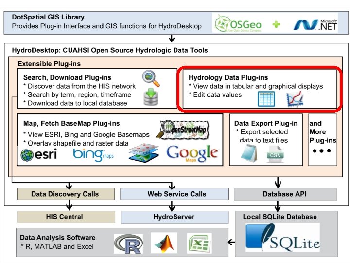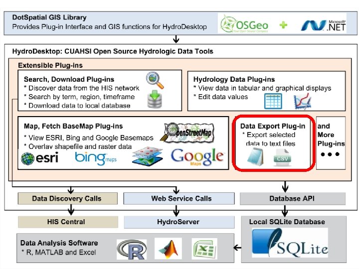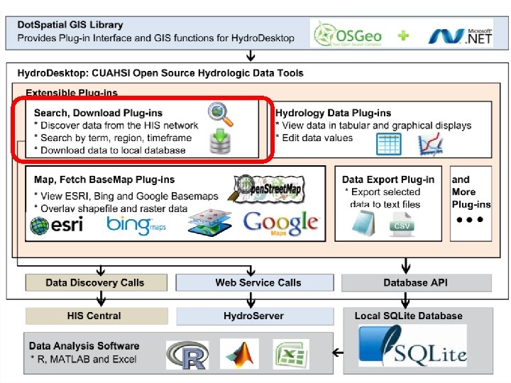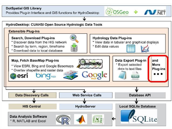 Hydro. Desktop Plug-in Development Existing plugins • Search and Download • Graph View • Data Export • Metadata Fetcher • Hydro. Modeler (Open MI) Hydro. Desktop. exe Dot. Spatial. dll Hydro. Desktop. Database. dll See “Documentation” Link on hydrodesktop. codeplex. com to learn how to write a plug-in. CZ O HI S Op Hy en dro De skt op MI