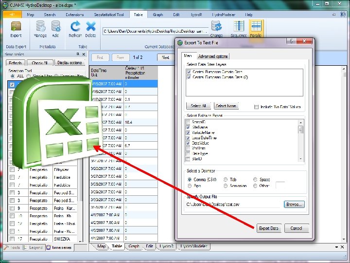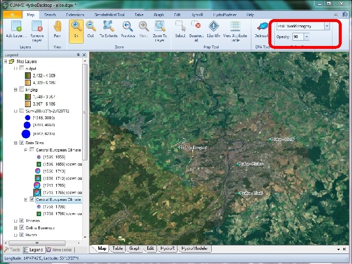 Hydro. Desktop Key Functions • Search for data by keyword(s), area, time range, service(s) • Graph, table view, and data export functions • Map based interface with common GIS functions • Extension system for additional functionality