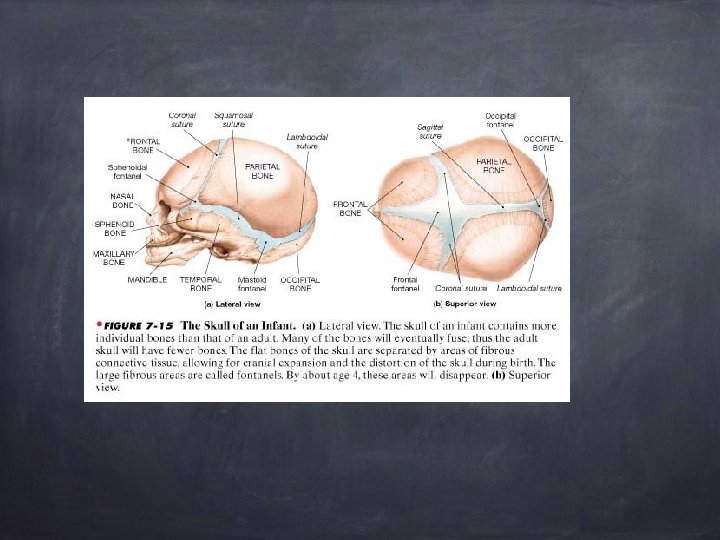 Infancy Head grows at alarming rate with hydrocephalus. First signs- bulging of fontanels without head enlargement. Tense, bulging, non-pulsatile anterior fontanel Dilated scalp veins, esp. when crying Thin skull bones with separated sutures (cracked pot sounds on percussion)