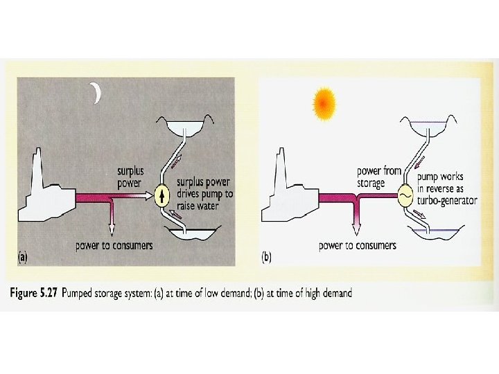 HYDROELECTRIC AND PUMPED STORAGE • PRESENT WORLD CAPACITY = 630 GW • POWER = DELTA P x FLOW RATE • POWER (W) = H =METRES, Q = CUSECS NIAGRA FALLS, H=100 M, Q=6000 M 3 S-1, P=5 GW