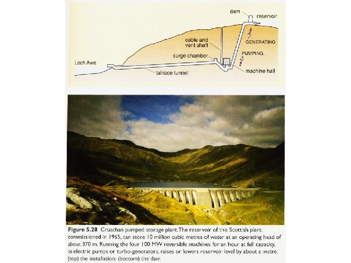 DINORWIG • 6 X 300 MW FRANCIS TURBINES • H=500 M, Q= 7 MILLION M 3 • • TURBINES OPERATING AS PUMPS USE 281 MW EACH TAKES 6 HOURS TO FILL UP AT NIGHT OVERALL EFFICIENCY = 88% IE PAY 12% OF POWER USED TO PROVIDE STORAGE