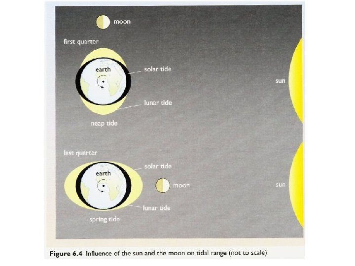 12. 5 HRS 50 MINS LATER EACH DAY 29. 5 DAY CYCLE 14 DAYS BETWEEN SPRING & NEAP SUN PULL IS 177 BIGGER THAN MOON MID OCEAN TR=0. 5 M NEAR COASTS TR AMPLIFIED UP TO 15 M
