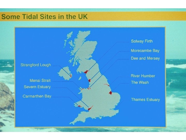 TIDAL POWER GRAVITATIONAL AND CENTRIFUGAL FORCES CAUSED BY THE EARTH-MOON INTERACTION TOTAL UK POTENTIAL = 17% OF CURRENT ELECTRICTY GENERATION