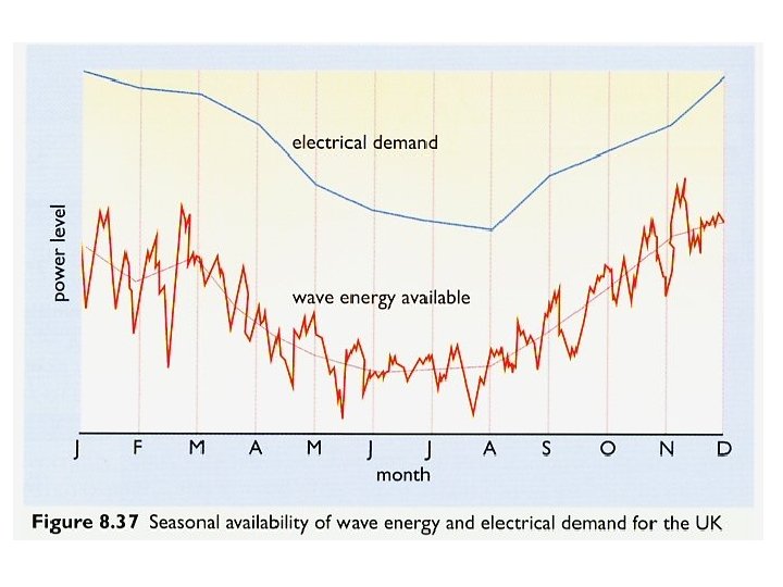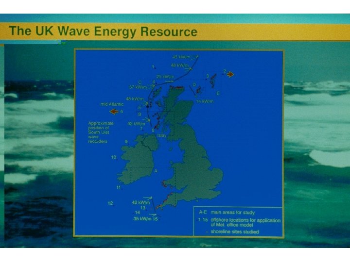 WAVE ENERGY UP TO 2 MW/m Average 80 k. W/m Twice as much available in UK territorial waters As current installed generating capacity Seasonal peak in the winter Storms a problem