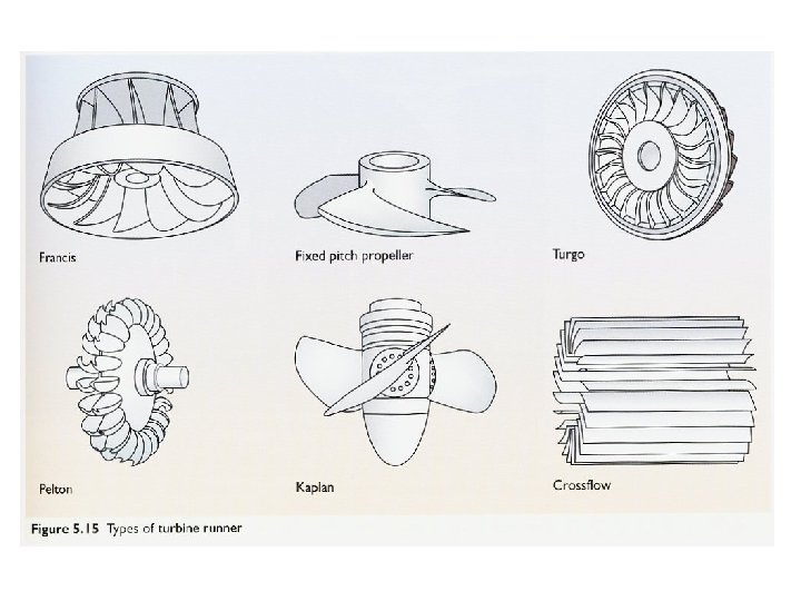 ALL NEED TO RUN AT CONSTANT SPEED KAPLAN – LARGE Q LOW H, VARY BLADE ANGLE FRANCIS – VARY Q BY ADJUSTING GUIDE VANES PELTON – VARY IMPULSE BY NOZZLE SPEAR