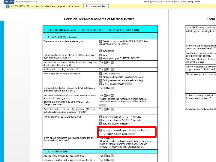 Conclusion • Need for hydrogen peroxide LTS within our setting because of specific surgical instruments • Important for ISO EN 13485 : – Sterrad Sterility Guide – Support by sterility advisors – Process control en parametric release • More research is needed on effects of hydrogen peroxide on instruments