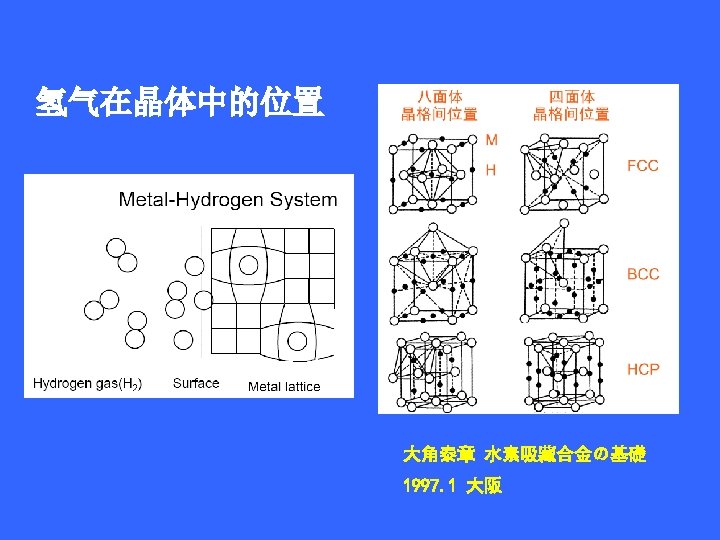 Intermetallic compounds and their hydrogen-storage properties Types/Properties AB 5 AB 2 AB A 2 B La. Ni 5 (Mm, ML) Zr. M 2 , Ti. M 2 (M: Mn, Ni, V) Ti. Fe Mg 2 Ni Storage capacity (mass %) 1. 4% Low 1. 8~2. 4% 1. 86% 3. 6% High Activation Easy Difficult in first process Difficult Storage rate Fast at room Temp. Absorption and desorption at room temp. low rates Working temp. > 300 C. Cyclic life Excellent Poor Fine Stability Excellent Fine Weak Fine Cost High Cheap Quite cheap
