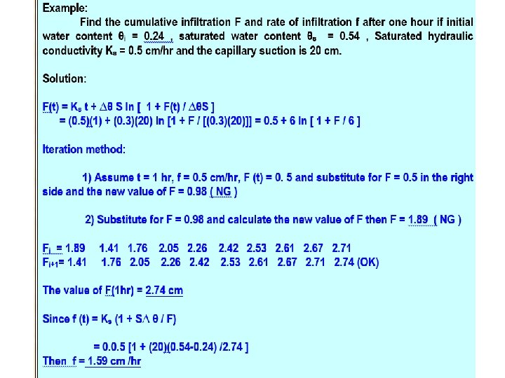 Limitations • Green-Ampt model applies only when rainfall intensity > infiltration capacity • For unsteady rainfall, G-A model applies as long as the rainfall variation is not large • others
