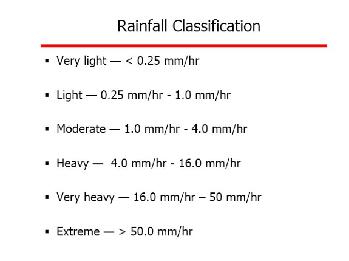 Forms of Precipitation Drizzle : fine water droplets of size less than 0. 5 mm. the drops are so small that they appear to float in the air. Glaze : when rain or drizzle comes in contact with cold ground at around 00 C, the water drops freeze to form an ice coating called glaze or freezing rain. Hail : it is showery precipitation in the form of irrigular lumps of ice of size more than 8 mm. occurred in violent thunderstorms.