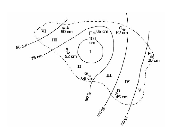 Thus additional rain gauge stations to be established = N -n=11 -5=6 The additional six rain gauge stations have to be distributed in proportion to the areas between the isohytals as shown below: