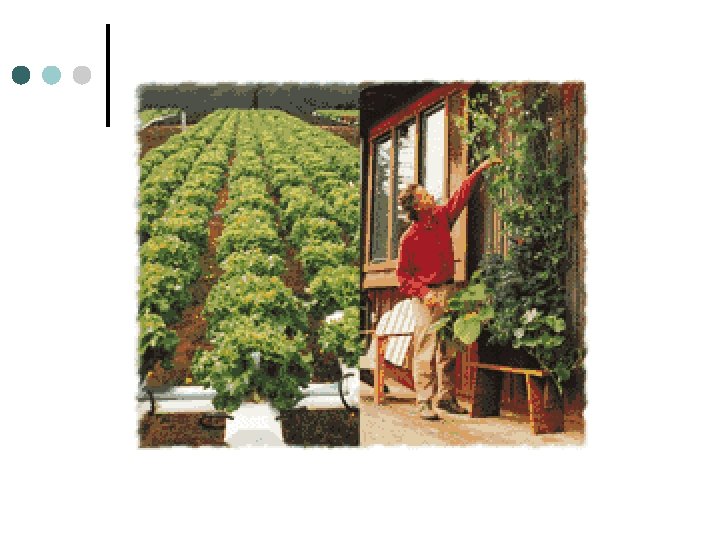 People in Hydroponics ¢ Commercial Growers - Fresh produce, $$ ¢ Hobbyists - Own satisfaction ¢ Scientists - Research tool ¢ Educators - Hands-on experience for students