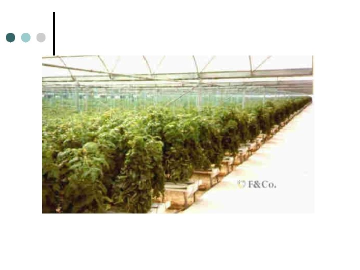 Advantages: Greater Control over Environmental Conditions Water and fertilizer can be reused ¢ Operator controls light ¢ Controlled and reduced use of pesticides and herbicides ¢ Elimination of soil-borne pests and diseases ¢ Sterile growing mediums ¢