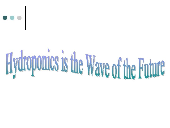 History of Hydroponics ¢ Past - ancient hydroponic gardens ¢ Present - growing technology ¢ Future - experimentation and research