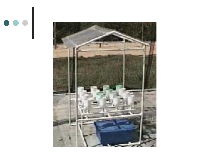 Water Culture ¢ ¢ Simplest type of active hydroponics Very inexpensive Best system for fast growing, water loving plants (lettuce) Does not work well with large or long-term plants