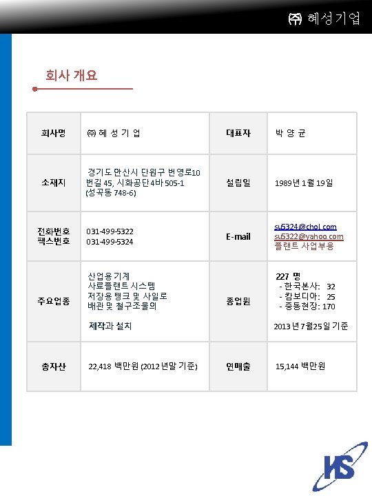 HYESUNG MACHINERY CO. , Ltd. 회사소개서 Company Introduction
