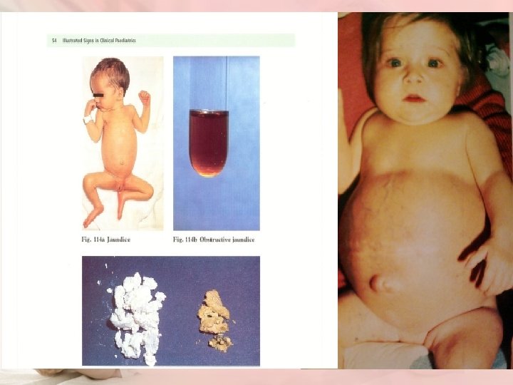 1 st recognized after the 1 st wk of life There is a long differential diagnosis for jaundice : Including • breast-milk jaundice, • septicemia, • congenital atresia or paucity of the bile ducts, hepatitis, • galactosemia, • hypothyroidism, • CF, • congenital hemolytic anemia crises related to red cell morphology and enzyme deficiencies spherocytosis, G 6 PD, pyruvate kinase def. )