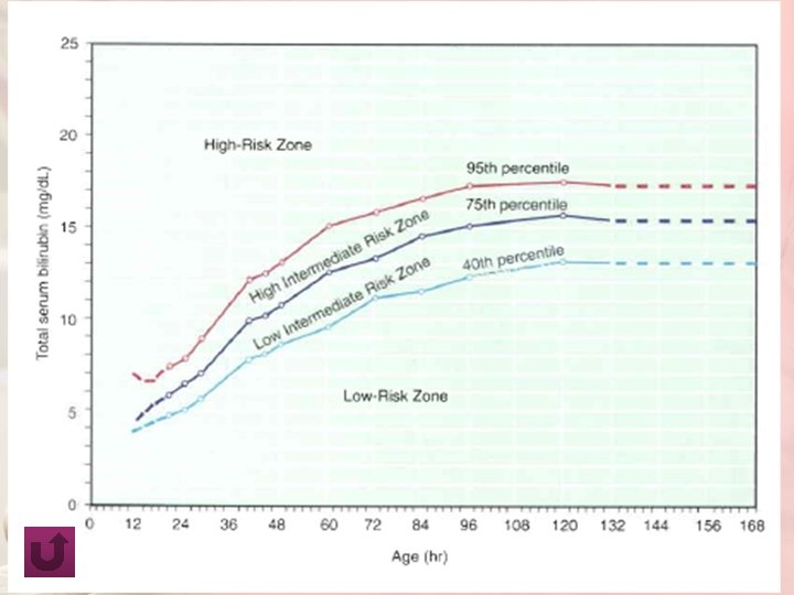 Prediction of which neonates are at risk for exaggerated physiologic jaundice can be based on hour-specific bilirubin levels in the 1 st 24– 72 hr of life ( Fig ) Indirect bilirubin levels in full-term infants decline to adult levels (1 mg/dl) by 10– 14 days of life.