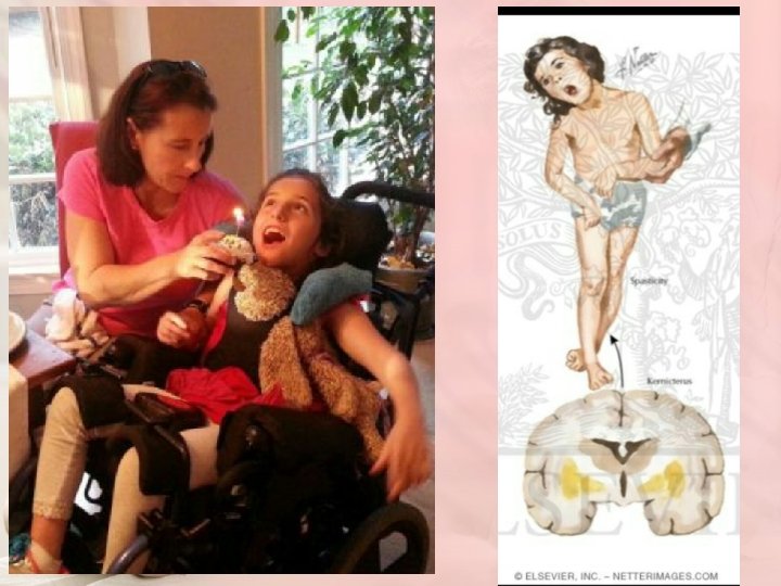 Phase 1 (1 st 1– 2 days): poor sucking, stupor, hypotonia, seizures ACUTE FORM Phase 2 (middle of 1 st wk): hypertonia of extensor muscles, opisthotonos, retrocollis, fever Phase 3 (after the 1 st wk): hypertonia First year: year hypotonia, active deep tendon reflexes, obligatory tonic neck reflexes, delayed motor skills CHRONIC FORM After 1 st yr: movement disorders (choreoathetosis, ballismus, tremor), upward gaze, sensorineural hearing loss