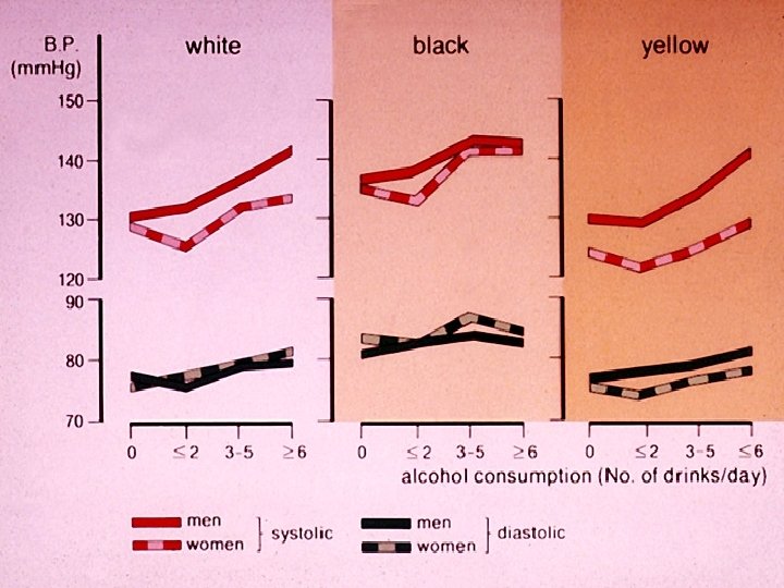 Hypertension and alcohol C. Lian, French army physician, 1915 30 % hypertensive 25 20 15 10 5 0 Sobres Moyens Buveurs Grands Buveurs Sobres Moyens buveurs: Grands buveurs: Tres grands buveurs: Tres Grands Buveurs <1 litre wine/ day 1 -1. 5 litres wine/ day 2 -2. 5 litres wine/ day 3 litres wine/ day + 4 -6 aperitifs