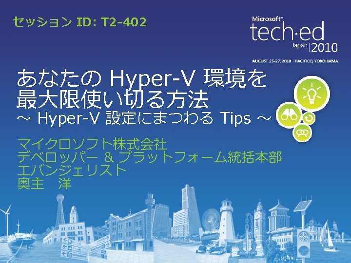 Linux 用 統合サービス のバージョンと機能差 機能 公開時期 V 1 (終了) V 2 2008 年 2009 年 10 月 12 月 #4 Stable Mainline 2. 1 Beta V 2. 1 2010 年 N/A 3月 6月 VMBUS X X 2. 6. 33 (2. 6. 32 + ) X X IDE X X 2. 6. 33 (2. 6. 32 + ) X X Network X X 2. 6. 33 (2. 6. 32 + ) X X SCSI X X 2. 6. 33 (2. 6. 32 + ) X X SMP 2. 6. 33 (2. 6. 32 + ) X X "Modinfo DRIVER " support 2. 6. 33 (2. 6. 32 + ) Shutdown X X Time. Sync X X Heartbeat 25 X X