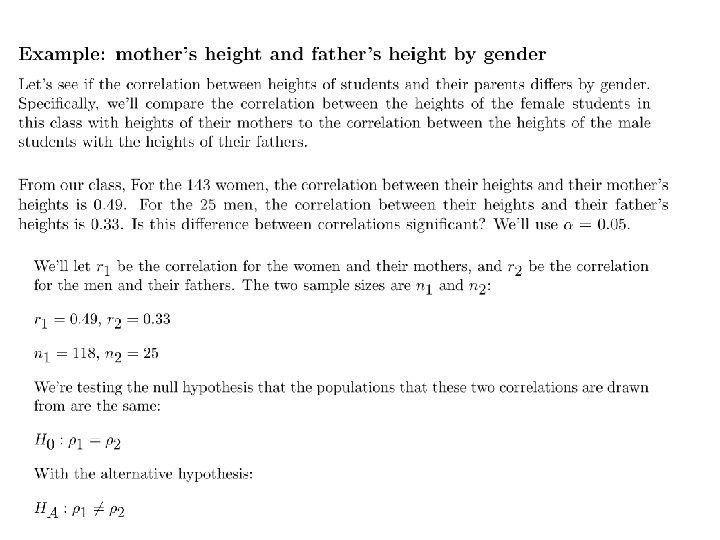 Chapter 16: Hypothesis Tests for Correlations We will make inferences about population correlations in two ways: 1) To test if a population has a correlation different from zero. 2) To test if two correlations are different from each other. We use the letter ‘r’ for sample correlations. We use the Greek symbol r (rho) for population correlations.