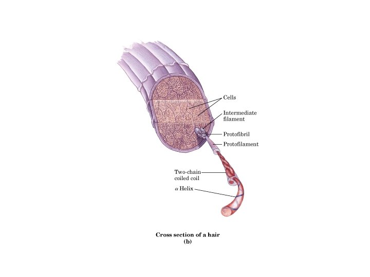 Proteine fibrose: ruoli strutturali in cellule e tessuti animali miosina (muscoli) fibrina (coaguli di sangue) α-cheratina (capelli) collageno (tendine, tessuto connettivo, cartilagine) β-cheratina (piume, scaglie) fibroina (seta) elastina (tessuto estensibile, legamenti, vasi sanguigni) α-Eliche avvolte (superavvolte). La lunghezza può superare 100 nm (0. 1 µm)