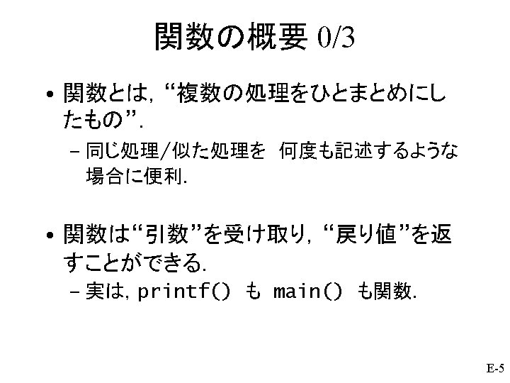 プログラミング論 I 2010年 06月03日 関数 http: //www. ns. kogakuin. ac. jp/~ct 13140/Prog. 2010/ E-1