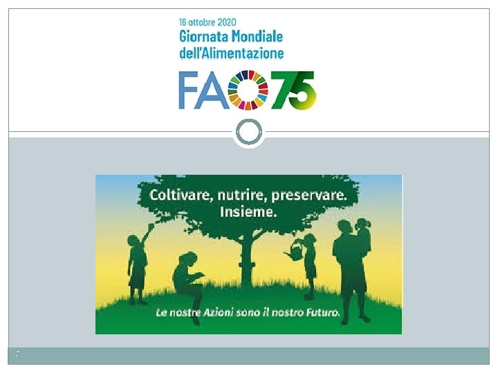 I 75 ANNI DELLA FAO • La FAO è stata fondata nel 1945 con l’impegno di migliorare le condizioni di vita. • Con oltre 194 Stati Membri, la FAO opera in più di 130 paesi del mondo. • Siamo convinti che tutti possano svolgere un ruolo importante nel porre fine alla fame e nel trasformare i nostri sistemi alimentari.