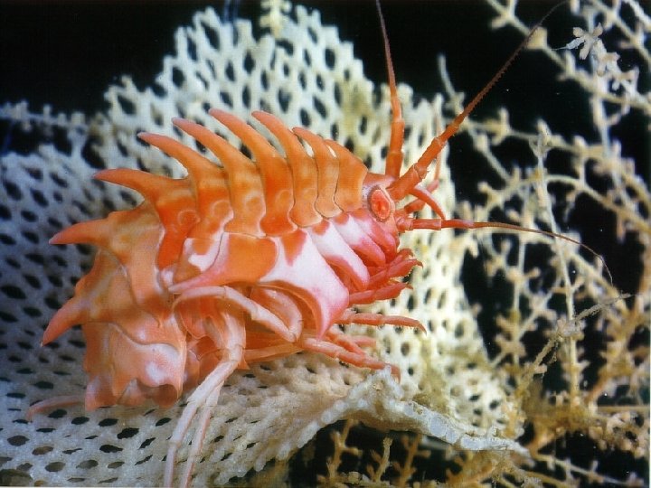 I. Arthropoda D. Isopoda (Isopods) • Dorsoventrally compressed • • • Related to terrestrial pill bugs Widespread distribution • • • Generally free living Important scavengers Often highly mobile • • Generally small (< 2 cm), but larger in deep ocean Some parasitic forms Brood young