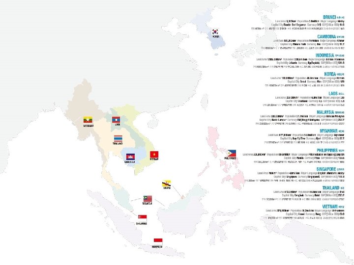 Table 2 (cont) Country Human Development Poverty headcount Index, 2008 ratio at $2/day, PPP(% population) Value Rank Percent of GDP (value added), 2007 Density(per sqm) Agri Ind Man Ser Brunei Darussalam 75 1 71 10 28 0. 9 30 . . Cambodia 83 32 27 19 41 0. 6 131 68 Indonesia 126 14 47 27 39 0. 7 107 . . Lao PDR 27 40 31 20 29 0. 6 130 77 Malaysia 82 10 48 28 42 0. 8 63 8 Myanmar 75 . . . . 0. 6 132 . . 303 14 32 22 54 0. 8 90 45 7024 0 31 25 69 0. 9 25 . . Thailand 132 12 46 36 43 0. 8 78 12 Viet Nam 278 20 42 21 38 0. 7 105 48 Philippines Singapore -5 - 떠오르는 ASEAN과 한국