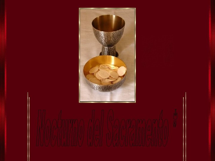 I Bajo la noche, que trasciende con un aroma de jazmines y de cedros, bajo la noche misteriosa quiero llegar, oh mi Señor, hasta tu templo. Vienen a oscuras mis pupilas, la Fe me lleva de la mano como a un ciego; no hay otra luz para mis pasos sino esta llama que me quema por adentro. Como mi sangre ya no grita, como mi carne ya me pesa mucho menos, por estas señas adivino que voy llegando a los confines de lo eterno. El Mundo se ha paralizado, han detenido su carrera los luceros, entré al país en donde moras, queda a mi espalda la frontera con el tiempo: el alma quiere echar raíces en la presencia de tu Blanco Sacramento.