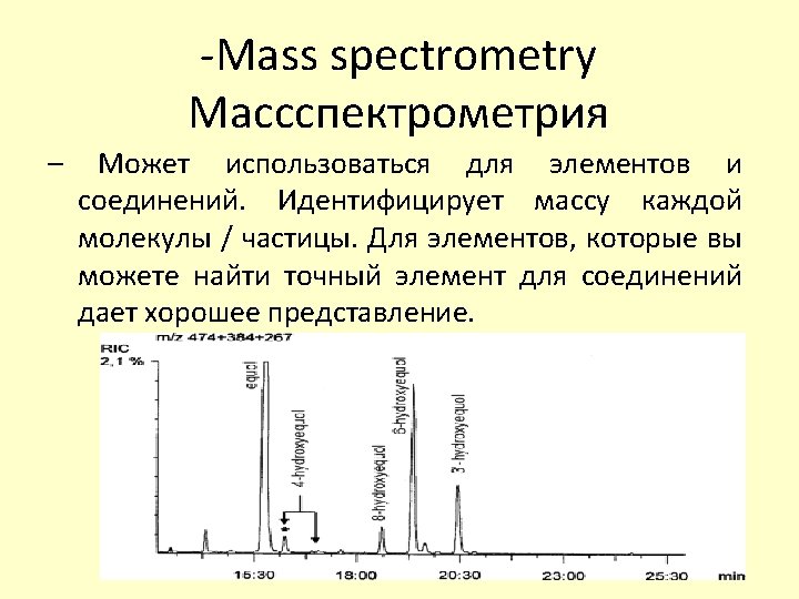 QUANTITATIVE techniques Testing that relies on measurements. titration Я могу описать количественные анализ и привести примеры(C) gas chromatography mass spectrometry