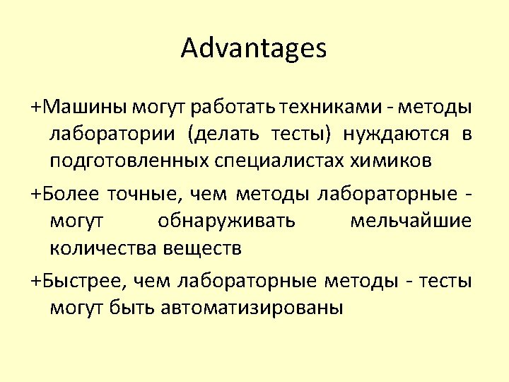 Disadvantages - Expensive to buy, run and maintain the machines - Дорого купить, эксплуатации и обслуживании машины