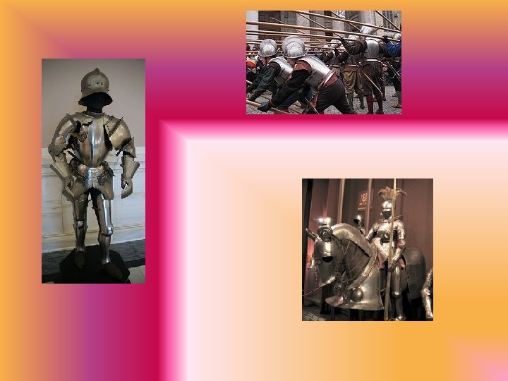 • Ormai dopo che i picchieri ebbero fatto il loro ingresso in campo la cavalleria pesante divenne pressocché inutile solo dopo il XV secolo, dopo l’invenzione dell'armatura a piastre, per cavaliere e cavallo, combinata con l'utilizzo della lancia, mantenne la forza in campo della cavalleria. Le battaglie potevano essere vinte dai picchieri e dagli arcieri ma per sfruttare la vittoria con l'inseguimento del nemico era necessaria la cavalleria.