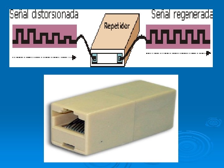 Sus principales características son: Ø Conectan a nivel físico dos intranets, o dos segmentos de intranet. Ø Ø Permiten resolver problemas de limitación de distancias en un segmento de intranet. Ø Se trata de un dispositivo que únicamente repite la señal transmitida evitando su atenuación; de esta forma se puede ampliar la longitud del cable que soporta la red. Ø Entrada de la señal atenuada Salida de la señal regenerada