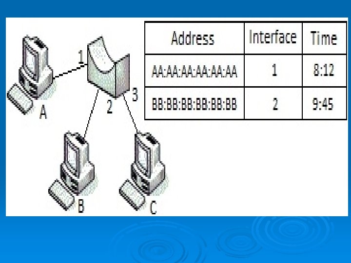 Ø Funciona a través de una direcciones MAC detectadas segmento al que está conectado tabla de en cada